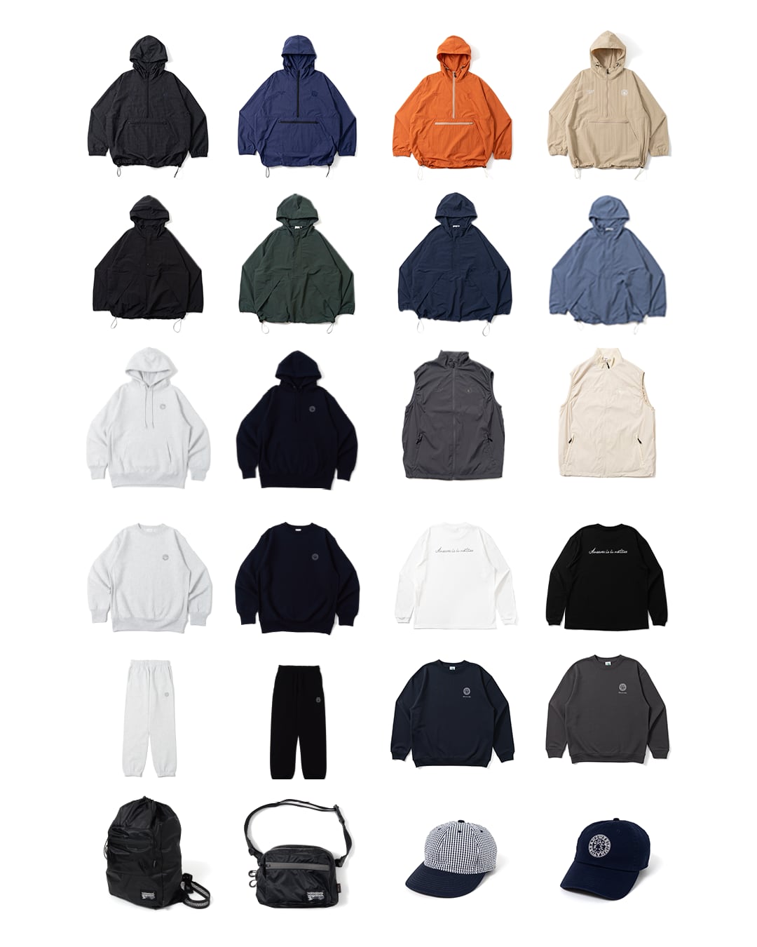 [アノラック(¥17,600)+ショルダーバッグ(¥14,800)+スウェット(¥11,000)+Tシャツ(¥7,700)+キャップ(¥8,800)+ショーツ(¥13,200)+スウェットパンツ(¥13,200)=¥86,300分の商品]